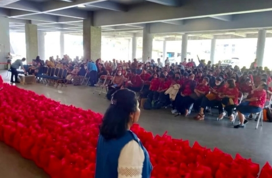 Para guru dan pegawai sekolah-sekolah Kristen tampak penuh sukacita menerima paket Natal yang langsung dibagikan usai ibadah.