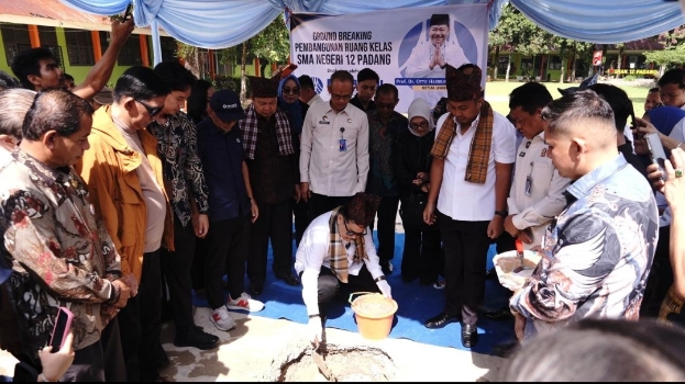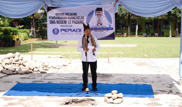 Peletakan batu pertama pembangunan kelas di SMA 12 Kota Padang oleh Ketua Umum DPN Peradi Prof Otto Hasibuan, 2 April 2026