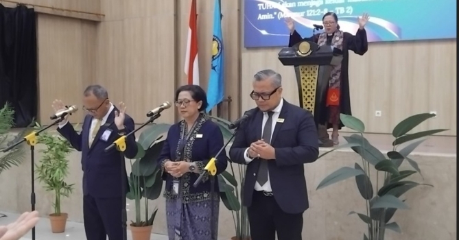 Pengukuhan 3 Wakil Rektor UKI, di Graha GWS, Kampus UKI, Cawang, Jaktim, Jumat (24/4/2026)
