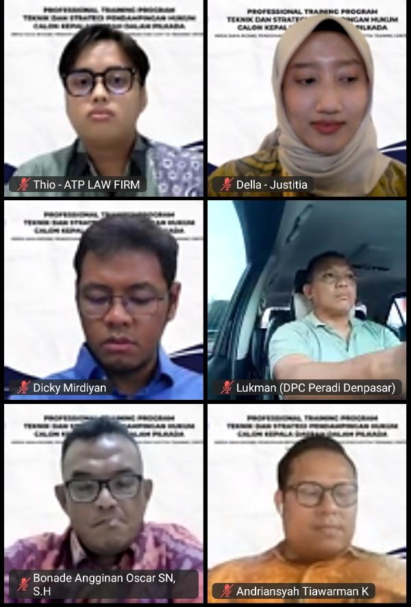 Jakarta, innews.co.id – Perhelatan Pemilihan Kepala Daerah Serentak 2024 usai dilaksanakan. Menunggu hasil perhitungan suara yang saat ini tengah dilakukan oleh KPU di masing-masing daerah, Bidang Pendidikan Berkelanjutan Dewan Pimpinan Nasional Perhimpunan Advokat Indonesia (DPN Peradi) bersama Justitia Training Center menggelar Profesional Training Program Teknik dan Strategi Pendampingan Hukum Calon Kepala Daerah Dalam Pilkada, secara online, Jumat (29/11/2024).