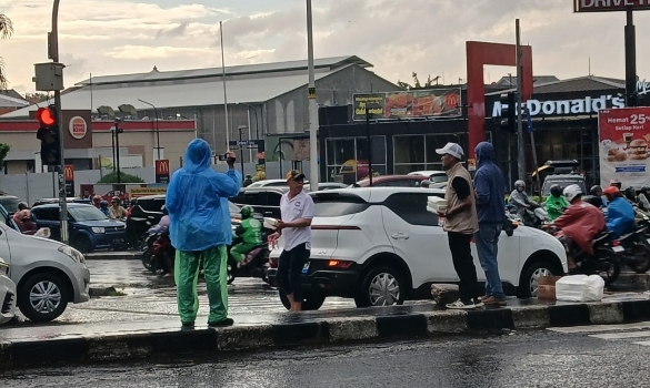 Warga yang melintas tampak begitu antusias menerima takjil. Khusus bagi para driver ojek online, selain takjil juga diberikan uang.